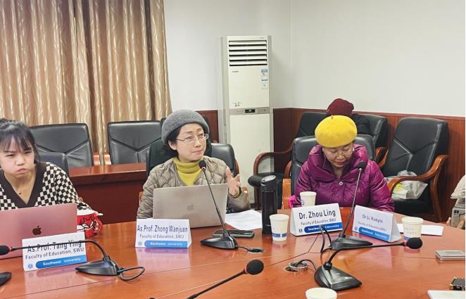 In order to improve the academic development of international students and to enhance the quality of postgraduate programs, the Faculty of Education of SWU held the 5th Academic Forum for international students at room 504 of Tian Jiabing Building, January 11st, 2022. Prof. Luo Shengquan, the Deputy Dean of FoE; Dr. Wang Xue, Director of the English-taught Program; Associate Prof. Hu Yanjuan, Associate Prof. Tang Ying, Associate Prof. Zhong Wanjuan, Dr. Li Xueyin, the Head Teacher of Grade 2019, Dr. Zhou Ling, the Head Teacher of Grade 2018 & 2021, and all international students of FoE on campus joined in the event. Other students who are not in China participated in the forum through the live stream of Dingtalk. The forum was hosted by Director Wang Xue.