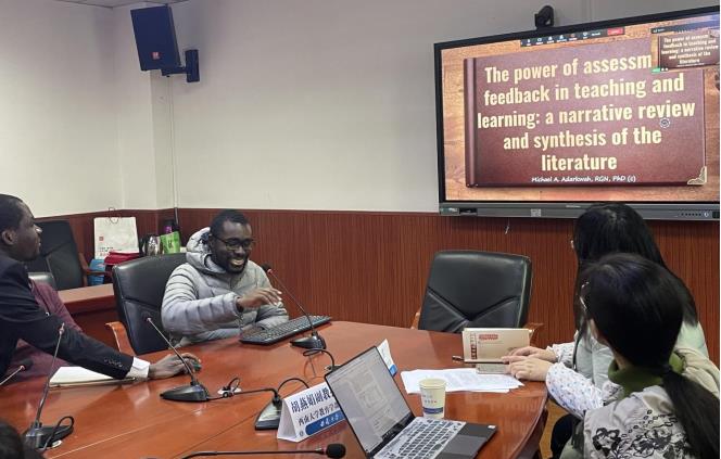为推动留学生的学术发展、提升留学生教育的培养质量,2022年1月11日下午15:00,西南大学必赢3003no1线路检测中心在田家炳教育书院504会议室举办了第五届留学生学术论坛。必赢3003no1线路检测中心副部长罗生全教授,全英文教研室王雪主任,胡燕娟副教授,唐颖副教授,钟婉娟副教授,留学生2020级班主任李雪垠老师、2018和2021级班主任周玲老师和在校留学生出席论坛。其他在国外的留学生通过钉钉直播在线参与了活动。本次论坛由王雪主任主持,Sabika Khalid、Gift Muyunda、Endale Tadesse 、Michael Agyemang Adarkwah、Yohana Kifle Mekonen、Khalida Parveen等6位留学生分别做了学术汇报,主题覆盖了高等教育、教师发展、校长领导力、汉语教学等。以汇报为依托,与会师生就学术论文选题、写作、发表等开展了积极的对话交流。留学生从高年级同学和老师那里获得了精彩的体验和建设性的反馈。有留学生表示,汇报的同学为他们作出了很好的示范。他们非常感谢必赢3003no1线路检测中心安排的本次活动。