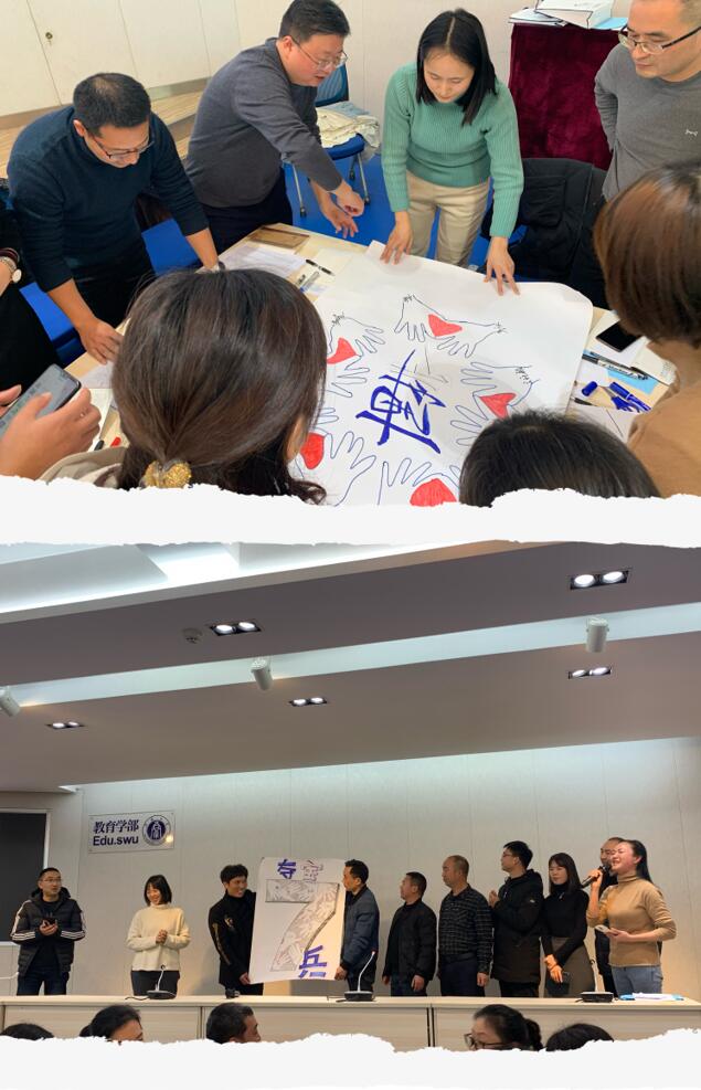 开班仪式后,班主任吴岚老师主持开展了“破冰活动”,通过名字接龙、解手链等游戏激发出老师们的积极性和参与热情,此后老师们充分发挥想象力和创造力,小组合作制作出精美且内涵丰富的展报。相信老师们定能在活跃的班级氛围中学有所获,满载而归!
