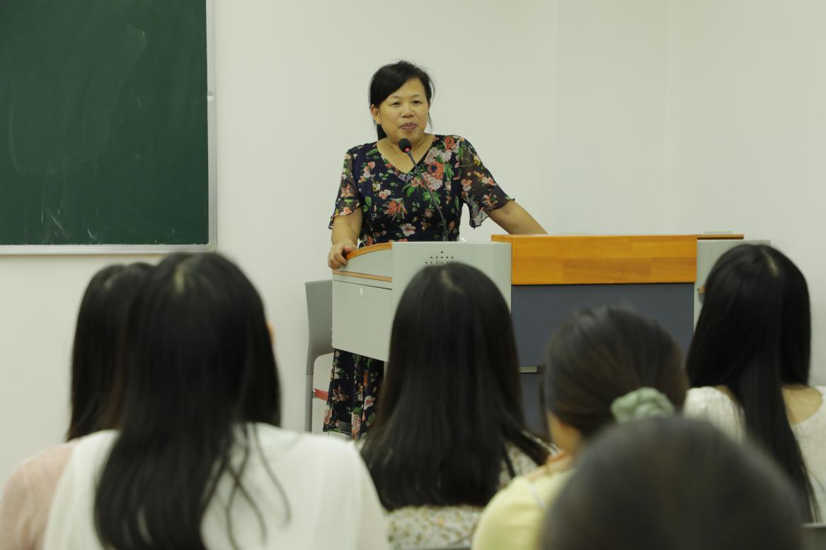 秦荣芳老师从清晰定位、虚心学习、主动提升三个层面给各位新生提出几点建议。其一,清晰定位,厘清专硕两年培养计划,积极参加各种活动,锻炼自己的胆识和实践能力; 其二,虚心学习,要向身边老师和同学们学习,虚心接纳他人的建议;其三,主动提升,要积极参加教学技能比赛、书法比赛等,不断提高自己的师范技能。另外,秦老师鼓励各位班委及党员同志充分发挥作用,为同学们策划有益且多样活动。