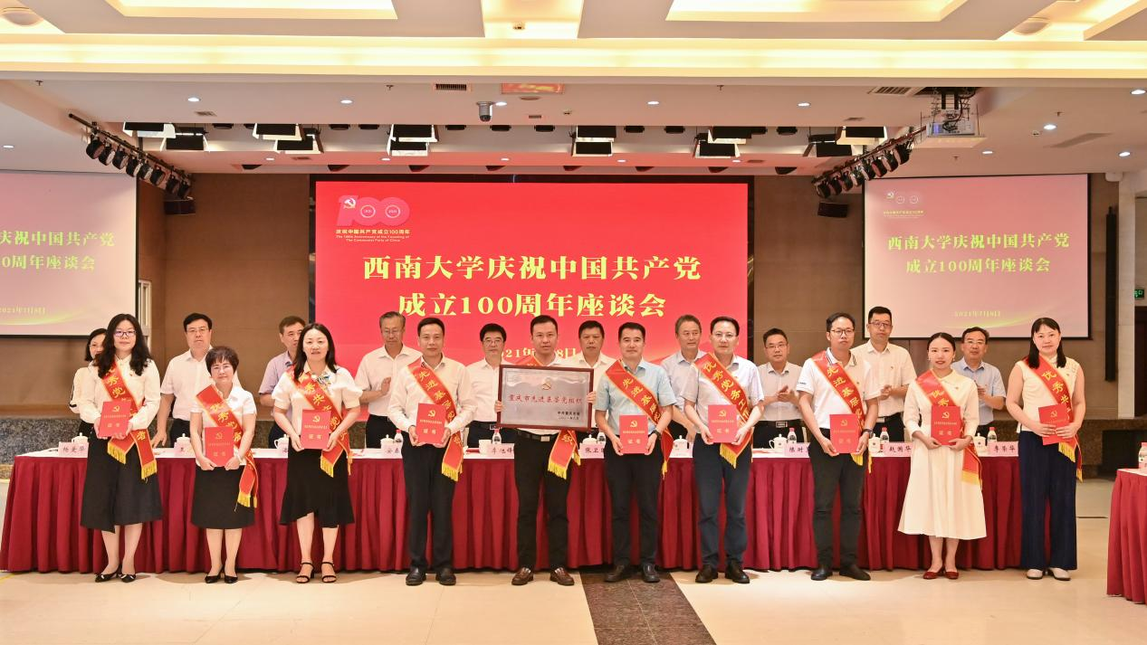 2021年7月8日,西南大学召开庆祝中国共产党成立100周年座谈会。在座谈会上举行了“两优一先”证书颁发仪式,王牧华书记代表学部党委接受了“重庆市教育系统先进基层党组织”证书,学校党委还授予学部党委博士生一支部被授予“西南大学先进党支部”称号,授予卓玉兵同志 “西南大学优秀党务工作者”称号,授予罗生全同志、熊晴同志和刘晨露同志 “西南大学优秀共产党员”称号。