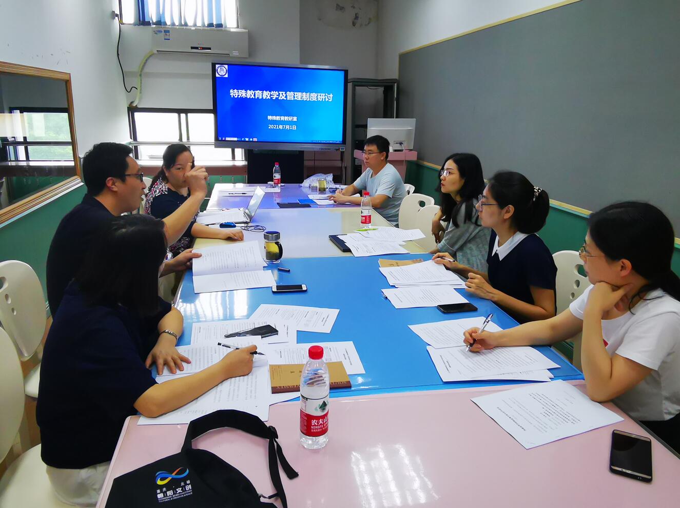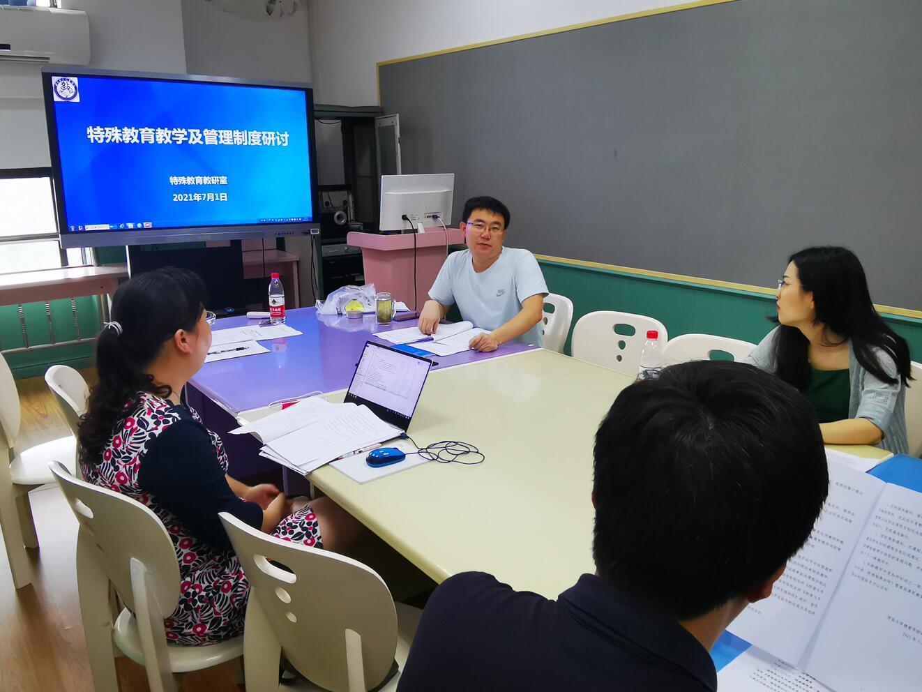 2021年7月2日下午,西南大学必赢3003no1线路检测中心特殊教育教研室在田家炳书院810室召开了特殊教育专业教学及管理制度研讨会,会议主要就专业认证中教学资料管理的规范性、课程目标达成情况评价报告的规范性及审核流程等进行了讨论。研讨会上,还就新修订的全日制特殊教育专业教育硕士培养方案和特教专业公费师范教育硕士培养方案进行了讨论。特教会议由特教学院院长赵斌主持。