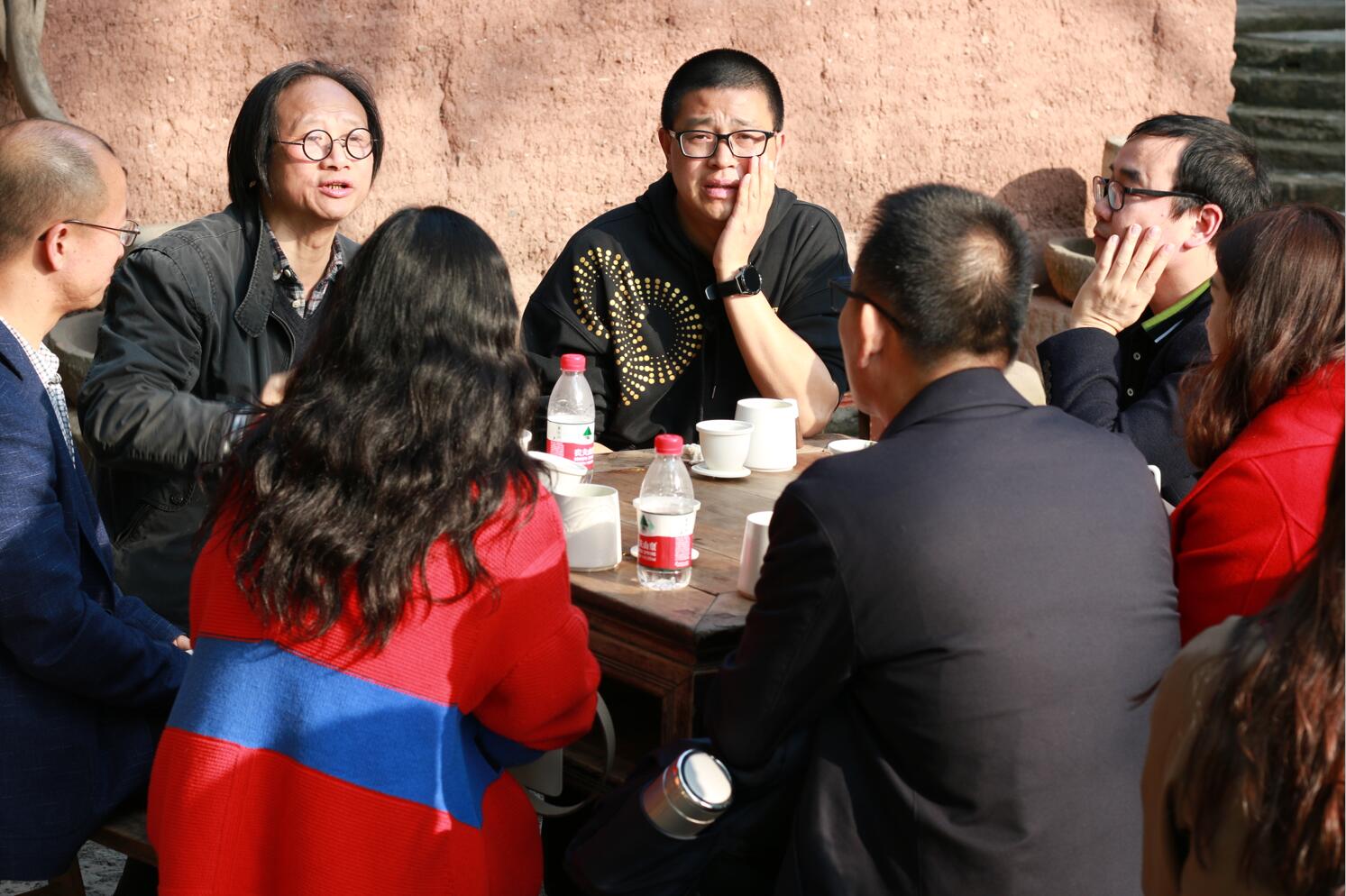下午,研学团前往四川美术学院(虎溪校区)。在2020级教育博士郁薇和四川美术学院党政办及发展规划处相关人员的组织下,研学团参观了美术馆1号厅,赏析“从南国社到四川美术学院:刘艺斯的艺术轨迹”展、《收租院》群雕铸铜作品及文献展。之后,研学团来到CAEA美术馆,造型艺术学院党总支书记、副院长王天祥教授详细介绍了"绿色设计与可持续发展研究"国家级项目,从危机与使命、定位与目标、结构与内容、思路与创新、实施与愿景等层面,提出了服务国家生态文明建设、建构中国绿色设计体系的重要性和紧迫性,勾勒了构建中国绿色设计体系的愿景目标与初步框架。最后,研学团相聚川美老院子茶叙,发展规划处陈斌处长介绍了四川美术学院的“十四五”规划情况,重点提出将围绕环川美艺术生态圈进行编制,张学敏教授表示高度赞同。研学团一行人通过此次艺术之旅的感同身受,充分体会了四川美术学院作为西南地区唯一的高等美术专业院校在学科建设、培养人才、社会服务等方面的风采。