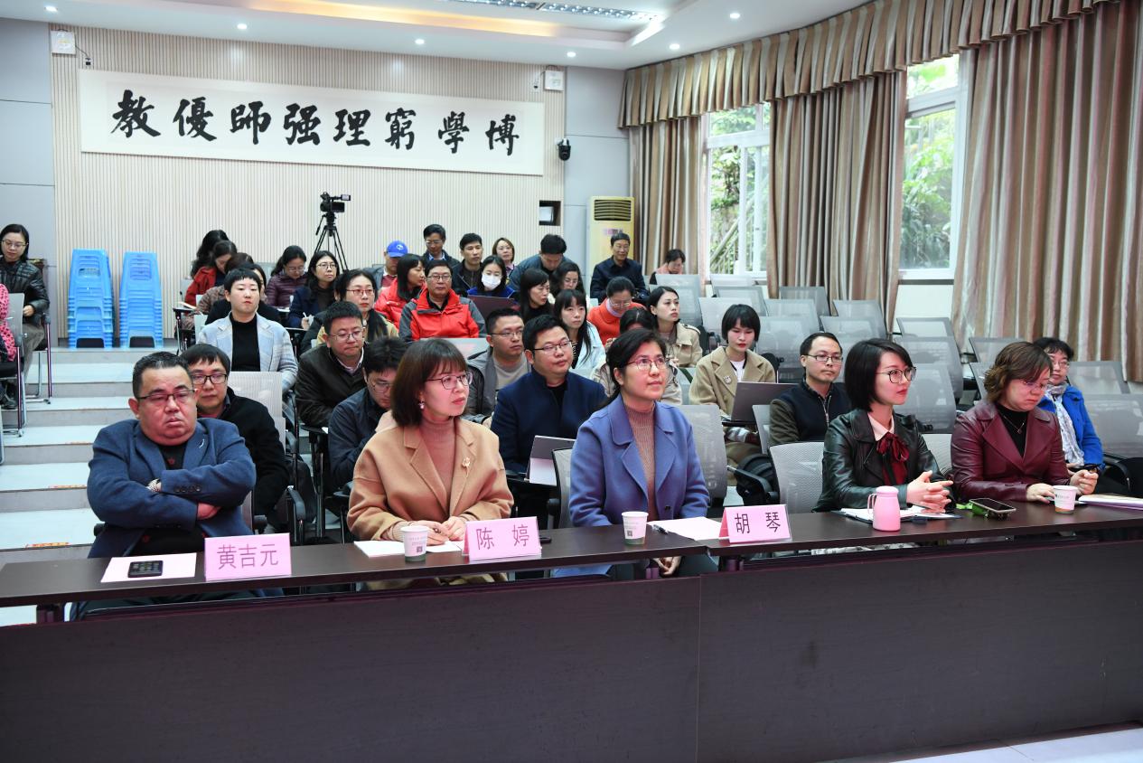学部部长朱德全教授、副部长罗生全教授、陈婷教授、办公室胡琴主任,北碚区教委饶英副主任、北碚区教师进修学院朱福荣院长、黄吉元副院长、贺晓霞副院长出席了本次会议。学部2020级学校课程与教学方向的12名教育博士、北碚区教师进修学院4名访学研修学员以及初教部、中教部、教育发展部的全体教师参加了典礼。会议由北碚区教师进修学院贺晓霞副院长主持。