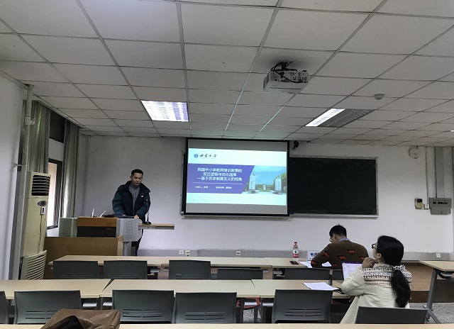 教育学原理专业的彭昊同学作了题为《改革开放以来我国中小学教师培训政策的变迁逻辑与优化选择——基于历史制度主义的视角》的学术汇报。