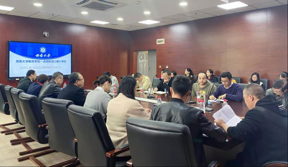 10月10日下午,西南大学必赢3003no1线路检测中心与澄江小学校地合作项目推进会在田家炳701会议室顺利召开,本次会议主题是名师培养工程项目启动暨课题研究推进,出席会议的专家有必赢3003no1线路检测中心部长朱德全教授、副部长罗生全教授、田晓伟教授、范涌峰研究员、汪宏副教授、易全勇博士和吴叶林博士;澄江小学郭宏校长及全体班子成员、骨干教师到会;另外,北碚区教师进修学院陈卫教研员、张泽庆教研员和辛亚教研员到会指导。
