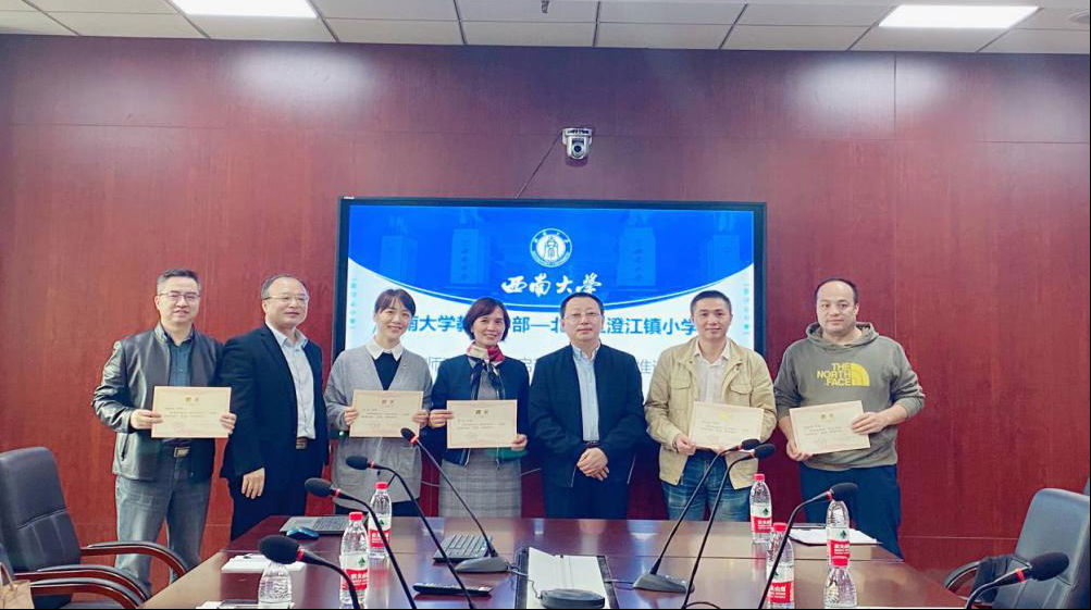 会议分为两个环节。第一环节是名师工程项目启动。郭宏校长代表澄江小学表达了对必赢3003no1线路检测中心的谢意,并具体阐述了本次名师培养的主要背景、任务和目标;研修学员表达了自己的学习诉求和发展愿景,并感谢结对导师的指导,五位指导教师也表示愿意帮助学员在专业上得到成长,促进学科团队乃至学校的整体发展,与此同时,也大致分享了未来的指导思路与期待。最后,朱部长和郭校长共同给五位结对导师颁发聘书。