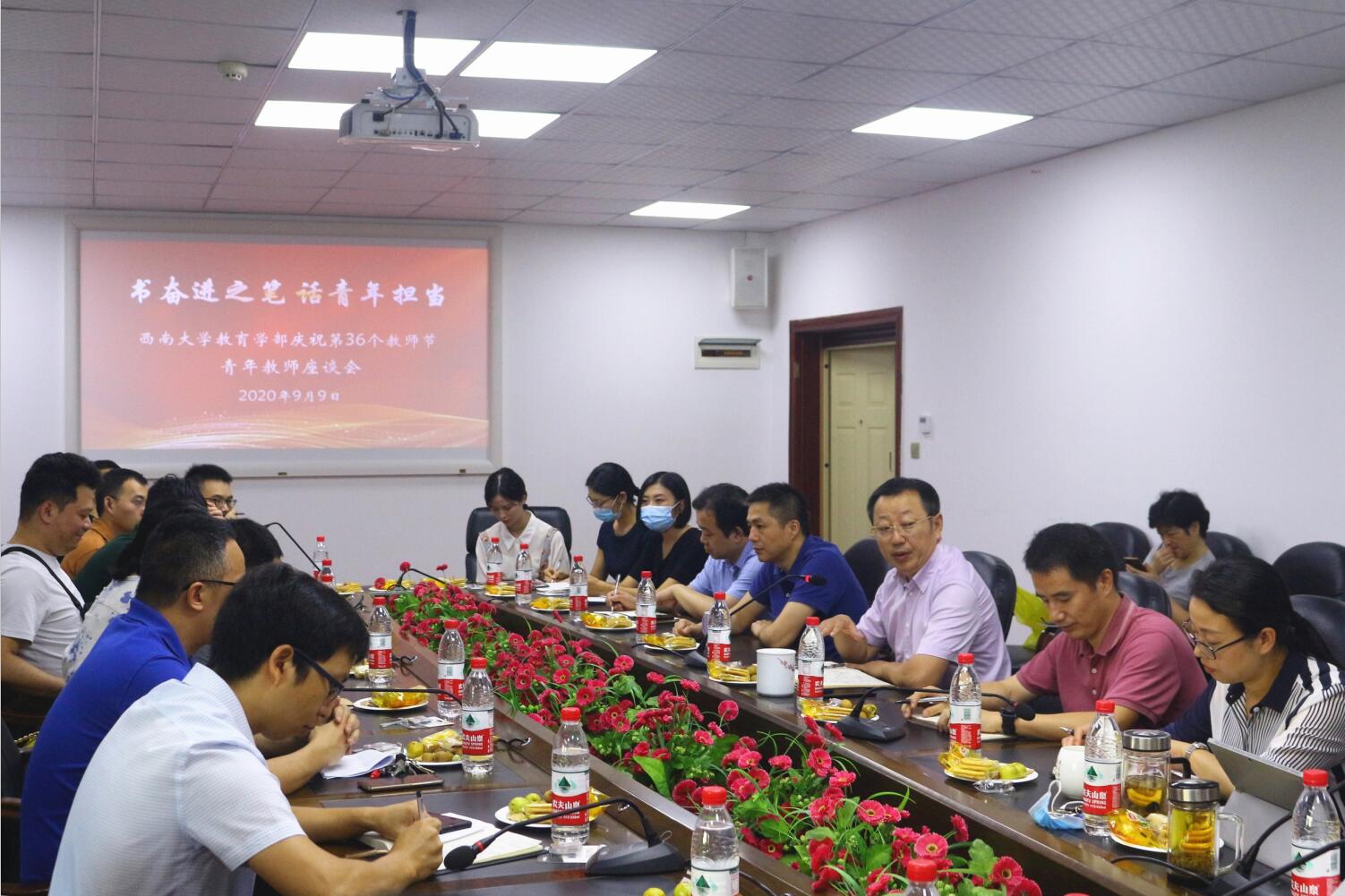 9月9日上午,西南大学必赢3003no1线路检测中心在田家炳教育书院403会议室隆重举行庆祝第36个教师节青年教师座谈会。学部部长朱德全教授,党委书记王牧华教授,党委副书记、纪委书记卓玉兵老师,党委副书记刘娇老师,副部长彭泽平教授、罗生全教授、王正青教授,部长助理张家军教授、谯宏老师,办公室主任胡琴老师以及17位青年教师代表参加座谈。座谈会由卓玉兵副书记主持。