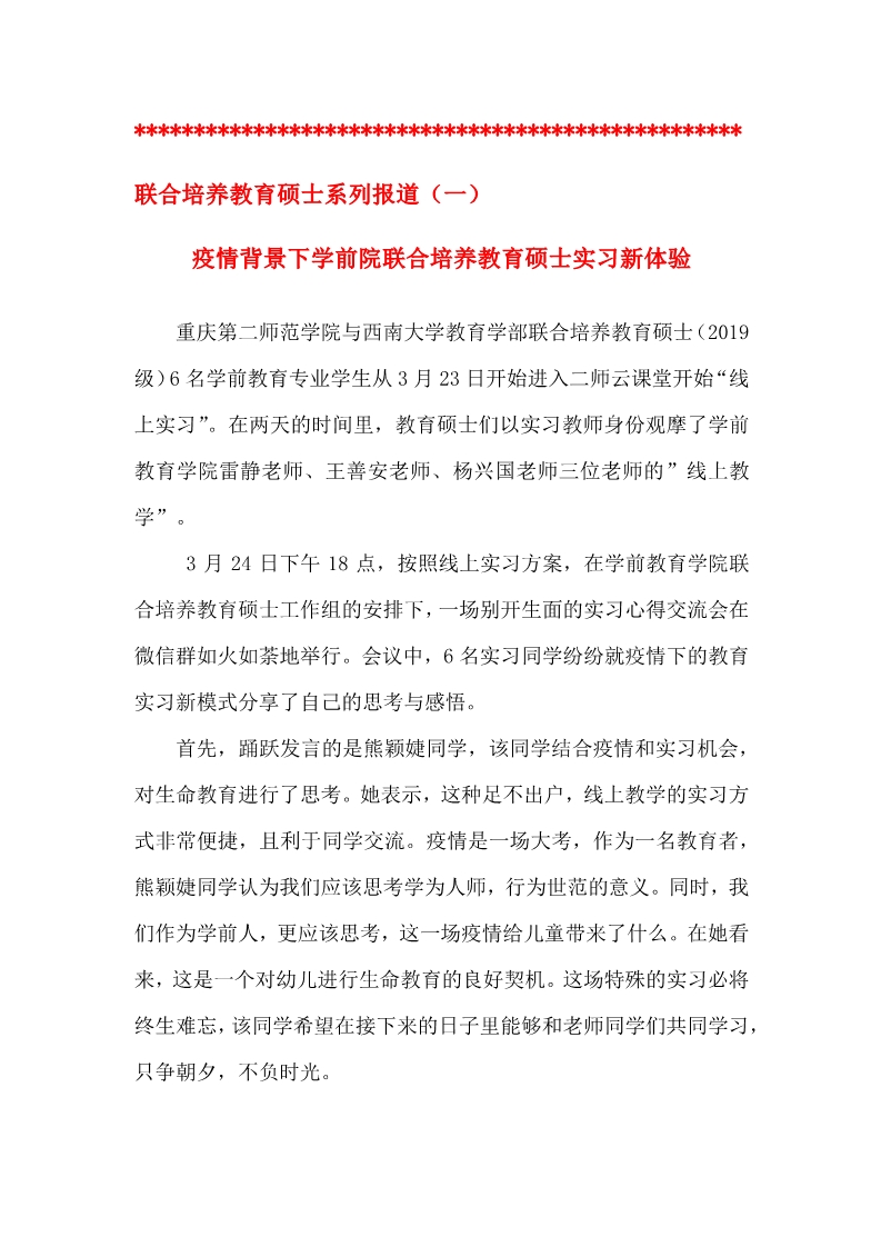 重庆第二师范学院与西南大学必赢3003no1线路检测中心联合培养教育硕士(2019 级)
