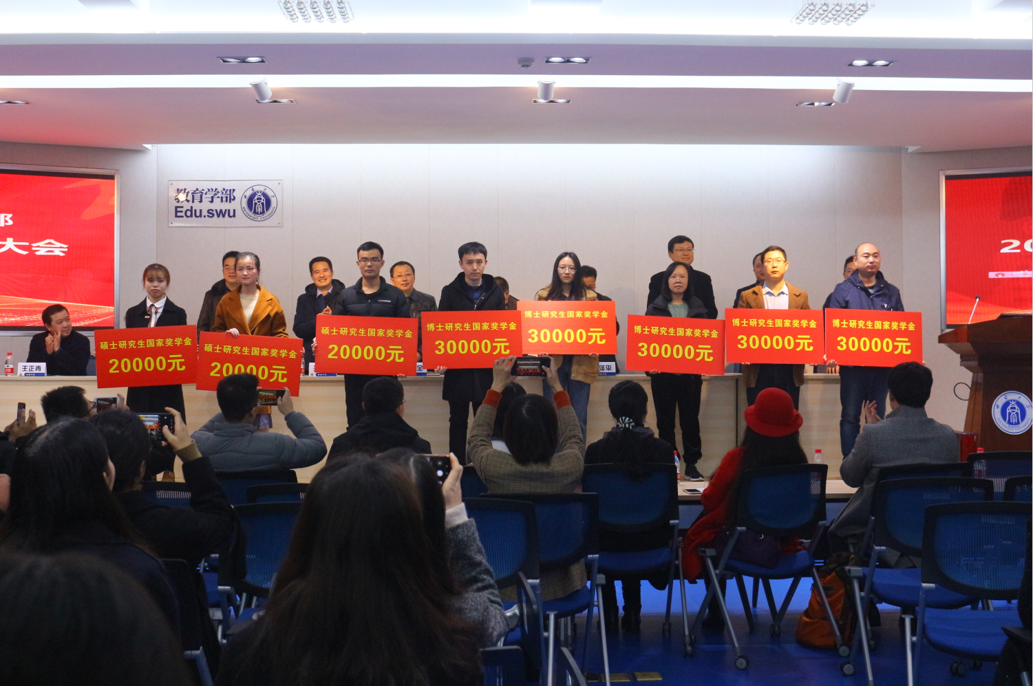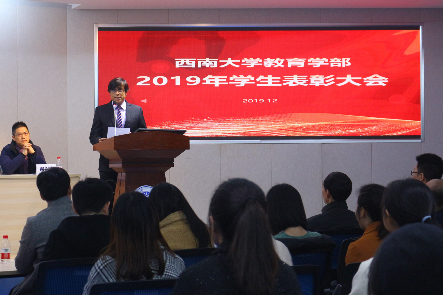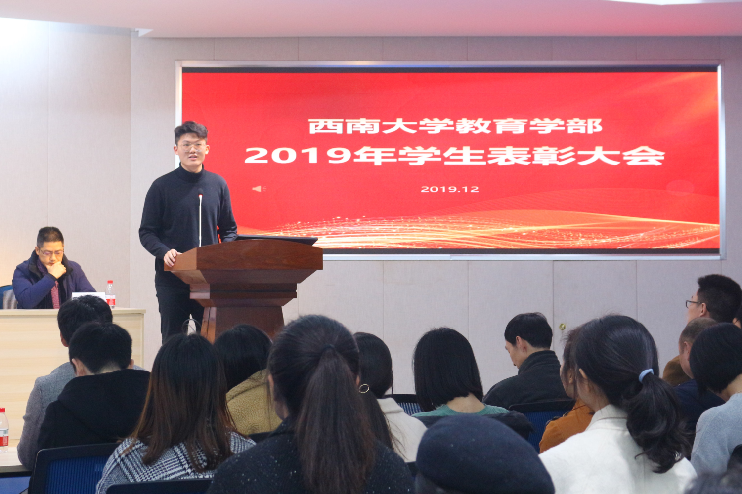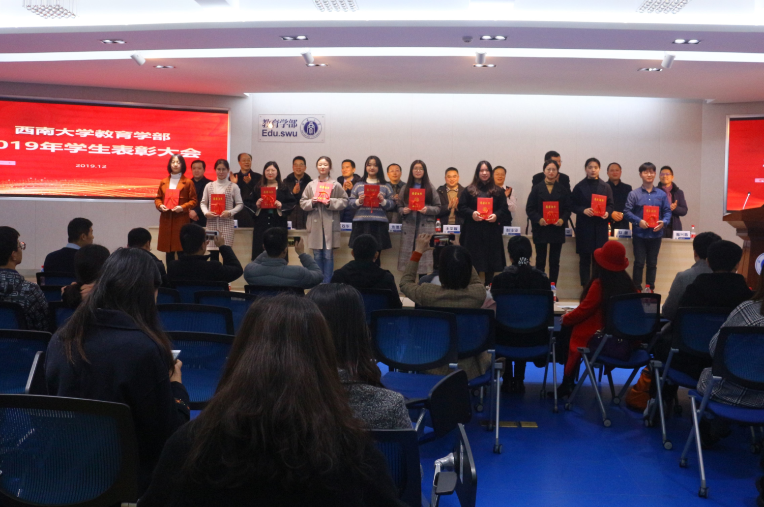 12月16日下午五点,西南大学必赢3003no1线路检测中心2019年学生表彰大会在田家炳教育书院811卓越讲坛报告厅隆重举行,出席此次大会的领导和老师有:必赢3003no1线路检测中心党委书记、部长朱德全教授,学部党委副书记、纪委书记王华敏教授,副部长王牧华教授、于泽元教授、彭泽平教授,教育技术学院院长刘革平教授,教育研究院院长唐智松教授,特殊教育学院常务副院长赵斌副教授,教育学院副院长王正青教授,学前教育学院常务副院长胥兴春副教授以及学部全体辅导员和班主任老师。此外,到场的还有获奖集体和个人代表以及2019级全体同学。本次表彰大会由王华敏副书记主持。