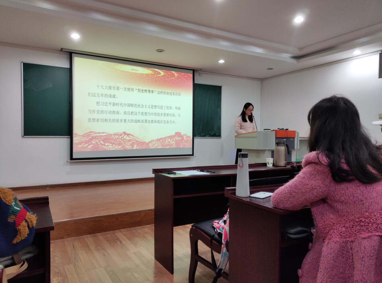 活动第一项,合唱《中华人民共和国国歌》。随后,支部开始第一个活动流程——学习党章党规。支部副书记李音同学带领大家学习了2017年通过的《中国共产党章程(修正案)》,主要围绕“新时代我们要坚持和发展什么样的中国特色社会主义”“该怎么坚持和发展中国特色社会主义”的重大问题展开。十九大报告将习近平新时代中国特色社会主义思想写进了《党章》,就是把科学理论、把这个思想确立为党的指导思想,引领我们建设新时代的社会主义现代化强国。