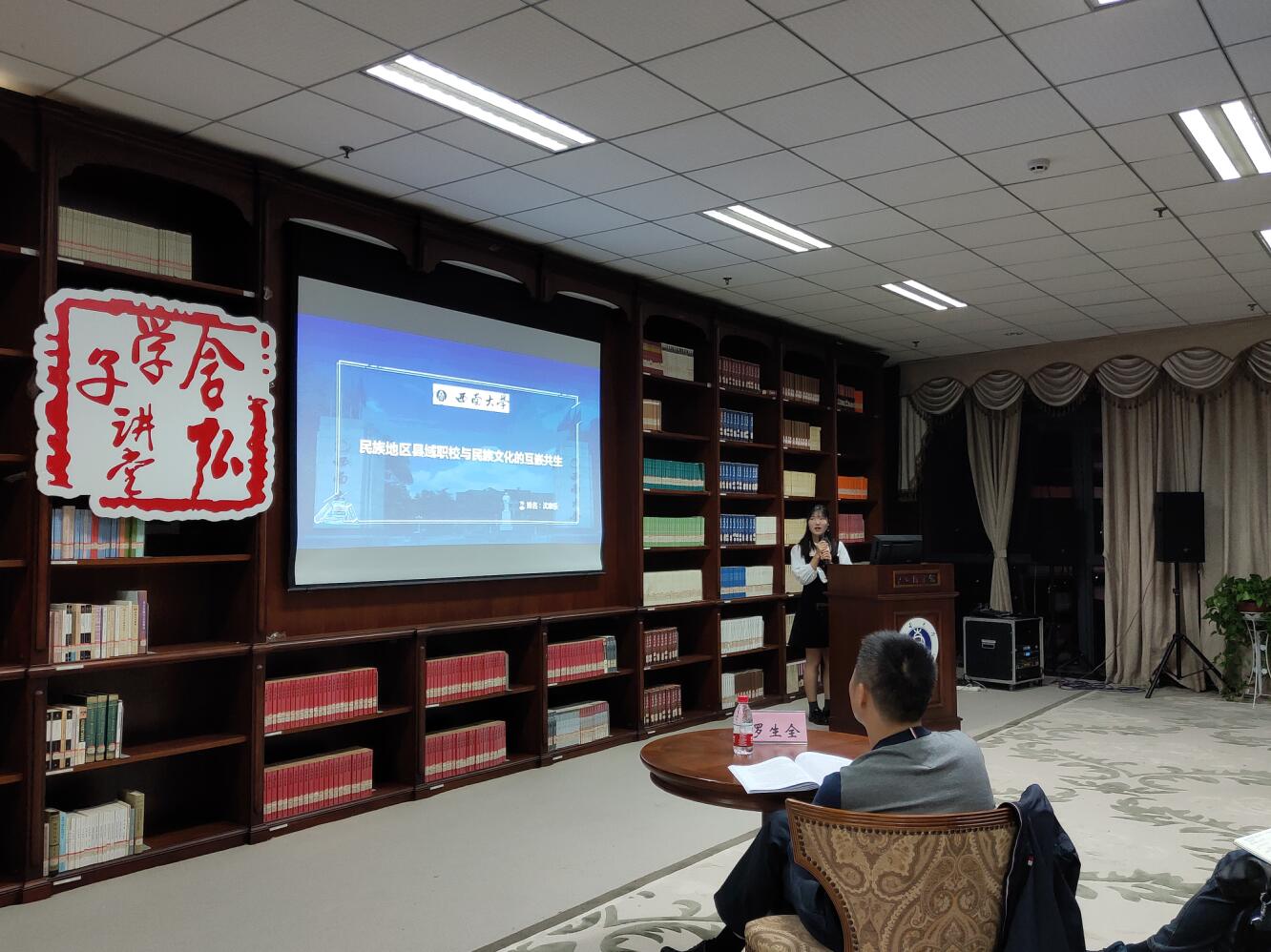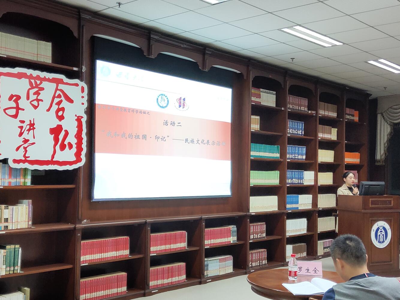 为庆祝中华人民共和国成立70周年,响应西南大学“含弘学子讲堂”系列活动的号召,2019年10月28日晚7点,由必赢3003no1线路检测中心、西南民族教育与心理研究中心(简称“西民中心”,后同)联合举办的含弘学子讲堂教育科学论坛之“庆祝新中国成立70周年”教育与民族文化发展专题活动在西南大学中心图书馆9楼学术沙龙报告厅展开。莅临本次活动的嘉宾有中国教育学会教育学分会课程学术委员会副秘书长、全国课程论学术委员会常务理事、西南大学必赢3003no1线路检测中心博士生导师罗生全教授,西南民族教育与心理研究中心陈伦超老师。西南大学研究生会主席夏浩然、学术部部长成真,必赢3003no1线路检测中心研究生会主席刘恩康、研究生团总支副书记潘可欣、副主席邹南芳,西民中心研究生会主席任芷若以及西南大学部分研究生同学参与了此次活动。