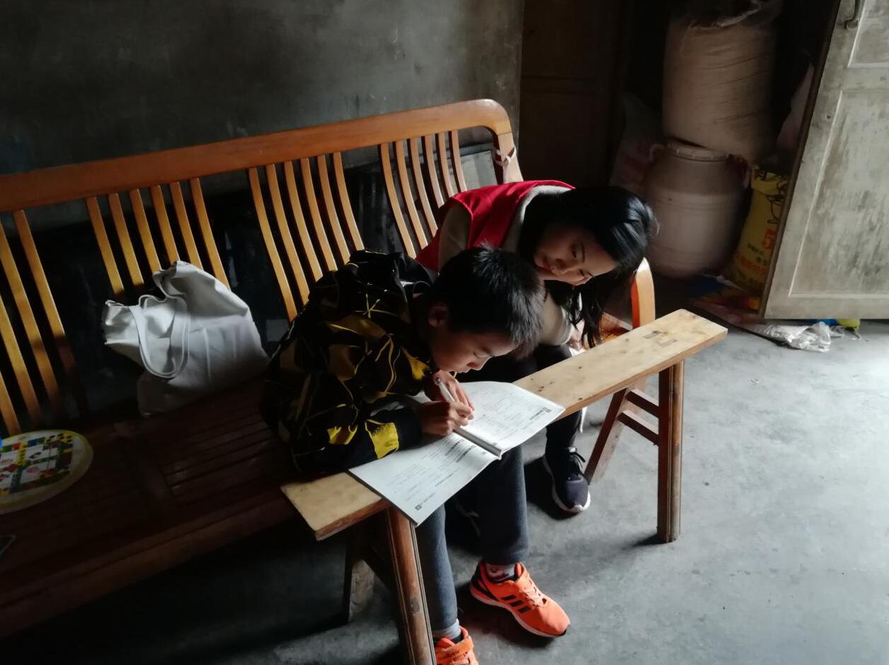由于此次对接的贫困家庭共2户,每户有2名小孩,因此小分队分成了2组,2人1组,采取1对1的模式在家庭作业、学科困惑等方面对孩子进行辅导,帮助他们查漏补缺、温习知识。