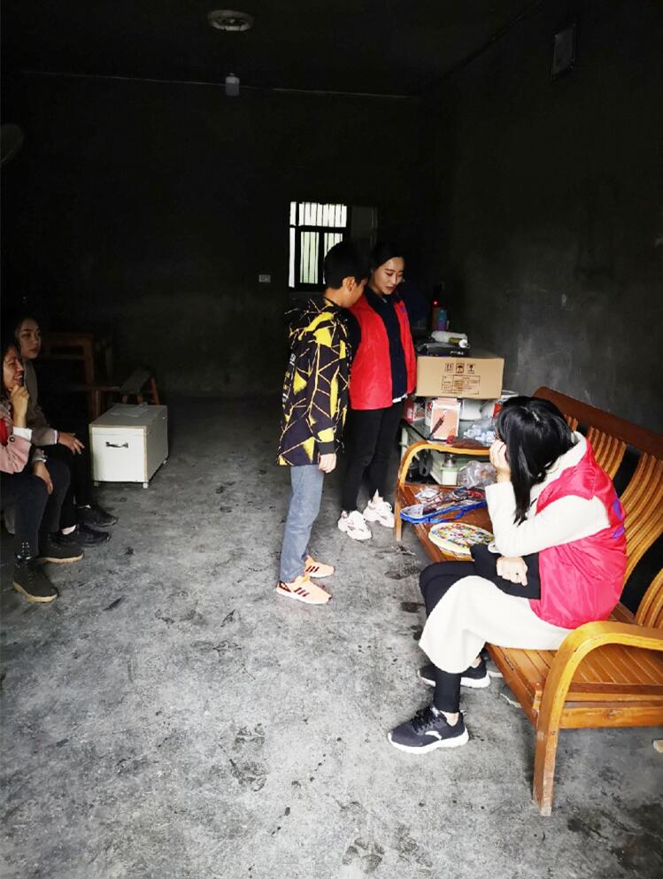 在历经2个多小时的公交车程后,志愿小分队又花了将近半小时终于步行抵达帮扶家庭。2户家庭早已在家翘首以待,非常热情地迎接着同志们的到来。在与家庭成员进行寒暄交流后,小分队为他们送去了羽毛球拍、水杯、跳棋等基本的物资。收到礼物的孩子们都非常欣喜,纷纷露出了天真而灿烂的笑容。