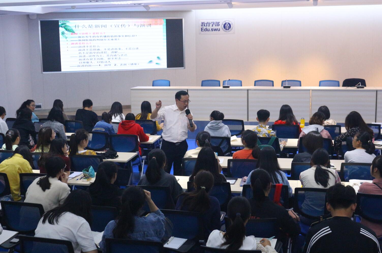 为引导学部学生干部适应新媒体背景下的新闻宣传与演讲的策划、写作和表达,由西南大学工会副主席,新闻传媒学院文化传播研究中心副主任,重庆市散文学会副会长,北碚区作家协会副主席兼秘书长郑劲松老师主讲的“必赢3003no1线路检测中心学生干部新闻意识培养与常见消息写作培训”讲座在田家炳教育书院811卓越讲坛报告厅顺利展开。