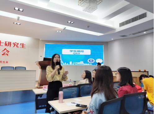 最后是自由提问的环节,与会的研究生新生就自己感兴趣的部分积极向嘉宾提问,分享嘉宾也热心细致地对问题进行了回应,给出了真诚中肯的建议。