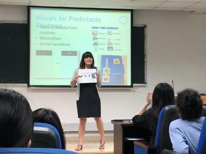 国际课程周第二周的序幕已经拉开,经过一周精彩纷呈的国际课程洗礼,学生们能够更好地适应全英文的课堂,能够更好地与教授互动,课堂氛围变得更加活跃,教授、听课学生的反馈也更加积极。美国密苏里大学Randolph教授带来的“针对自闭症学生的基础教学方法”课程持续为学生们带来干货,课程内容涉及自闭症儿童教学中的社交沟通技巧、基于循证的教学实践等,Randolph教授深入浅出讲解相关内容,并且分享了大量的教具、量表、学习链接等,学生们纷纷表示收获颇丰。
