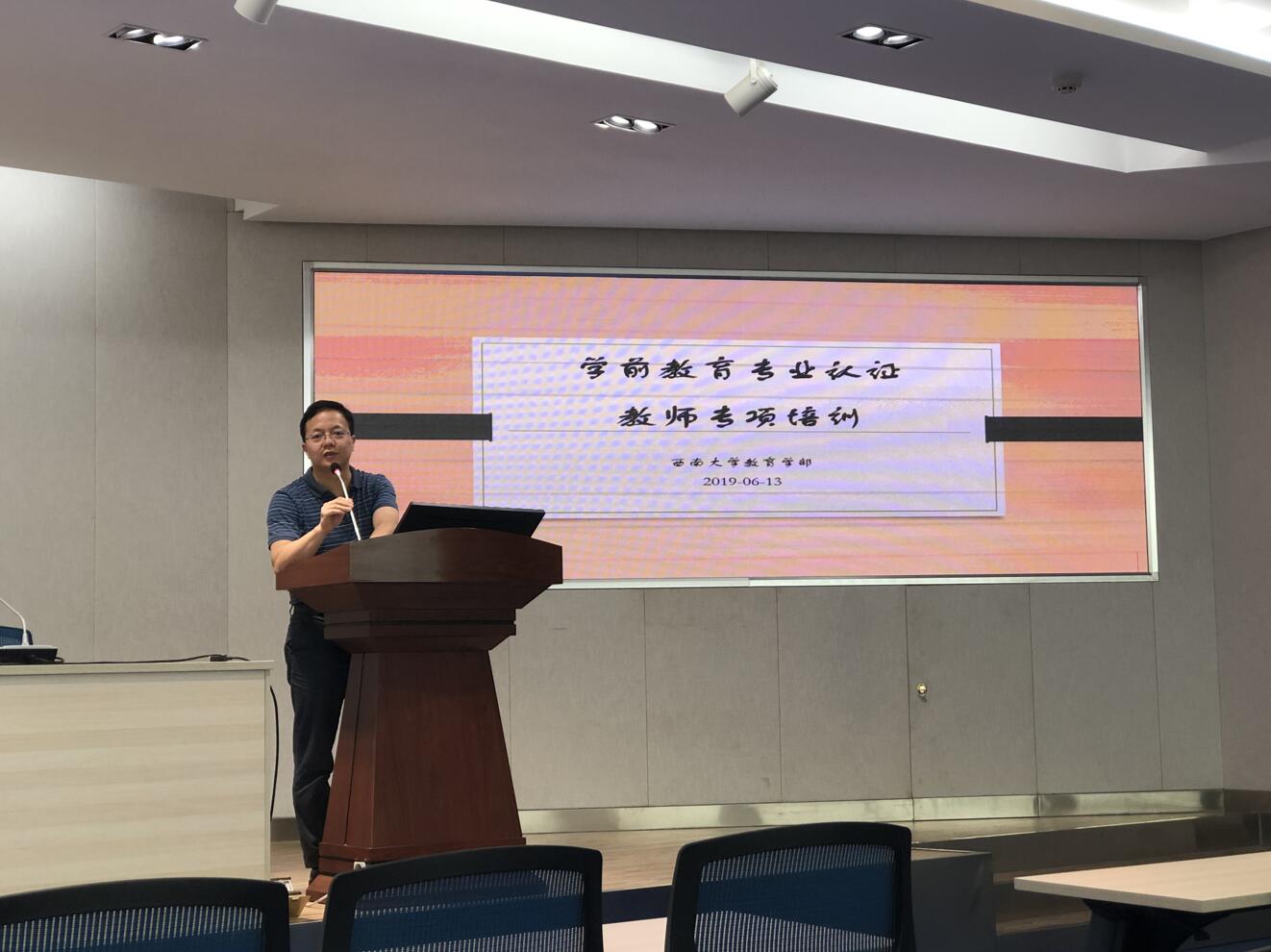 必赢3003no1线路检测中心副部长彭泽平教授就学前教育专业认证理念、课程设计与实施、整体反思与建议等内容,开展专项的教师培训,帮助全体人员深刻认识到专业认证的指导思想、认证体系、基本体系与原则。现场考查是专家全面客观地评判师范类专业人才培养质量达成度、适应度、支撑度、有效度、满意度的重要途径,也是专家真实感受必赢3003no1线路检测中心学前教育专业文化氛围的重要途径,希望全体教师以平和心态、学习心态迎接认证考查。