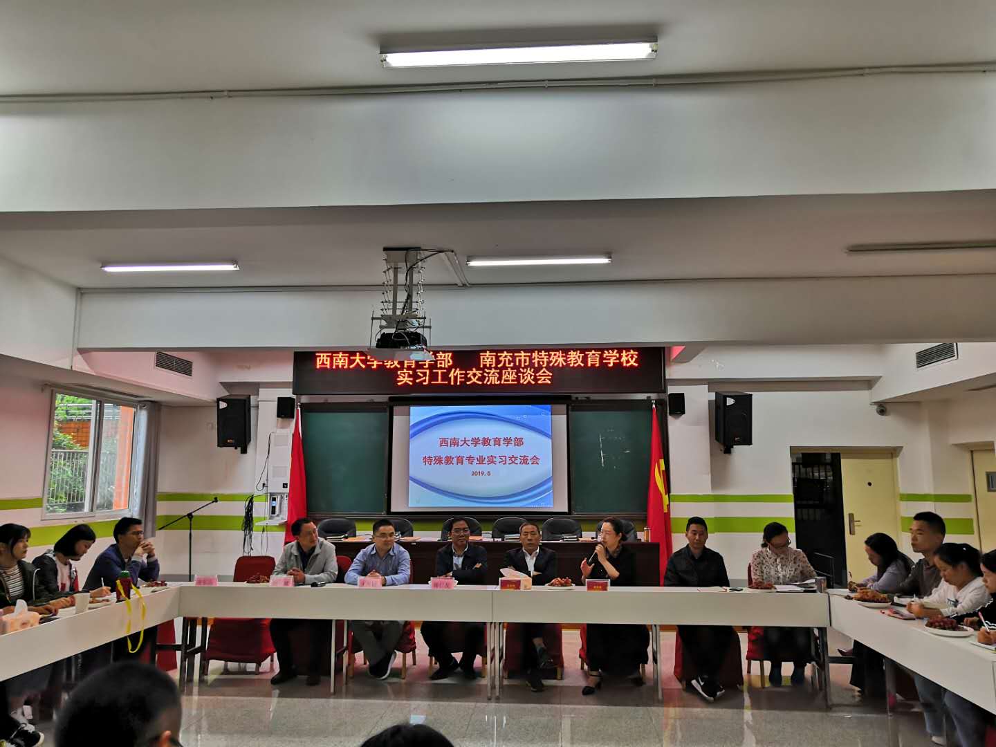 座谈会伊始,南充市特殊教育学校胡民拥校长、李春霖副校长代表学校致欢迎辞。胡校长对各位领导老师的到来表示了热烈的欢迎,并感谢必赢3003no1线路检测中心对南充特殊教育学校的信任。随后,韩书记对学校的实习安排表示肯定及支持、并表示“让实习生在实习过程中不断总结经验,为以后的教育教学打下坚实基础;且在教学中要不断反思、不断汲取先进经验,为国家和社会做出应有的贡献。”