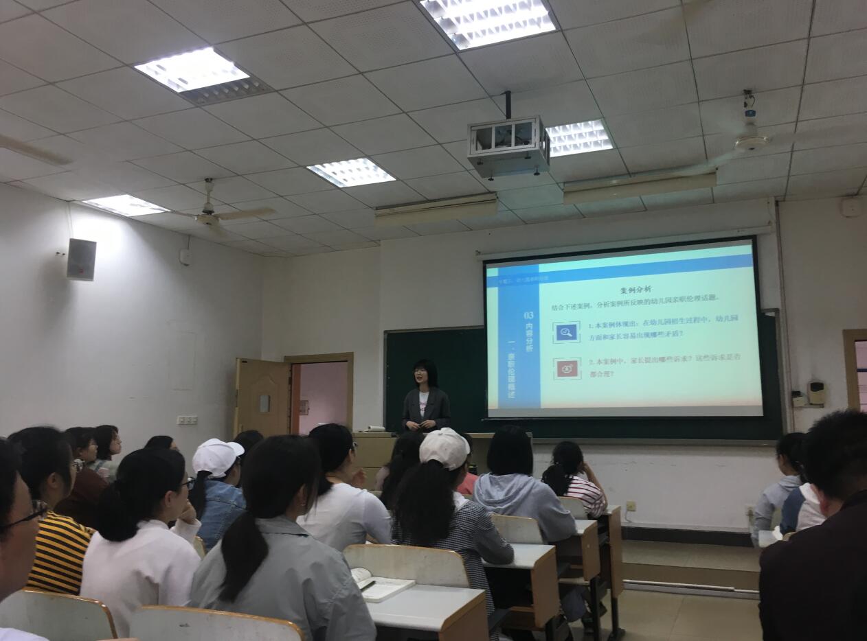 参加本次活动的教师集中观摩了张家军老师执教的《教育概论》和余璐老师执教的《幼儿园教师专业伦理》课程。张家军老师从文化与教育的关系入手,引导学生分析文化与教育间的复杂关系、文化模式的转变对教育的影响等内容,并以引人入胜的视频案例启发学生思考科技发展与教育间的关系,教学内容贴合学生兴趣,教学过程注重启发。余璐老师从一则幼儿园招生典型事件入题,介绍了新时代幼儿园教师职业行为准则要求,引导学生辨析中小学和幼儿园教师职业行为规定上的异同,并以“全美幼教协会”(NAYEC)关于幼儿园亲职伦理的规定,比较分析国内外幼儿教师职业行为准则差异,教学内容思想性强,教学形式丰富多彩。