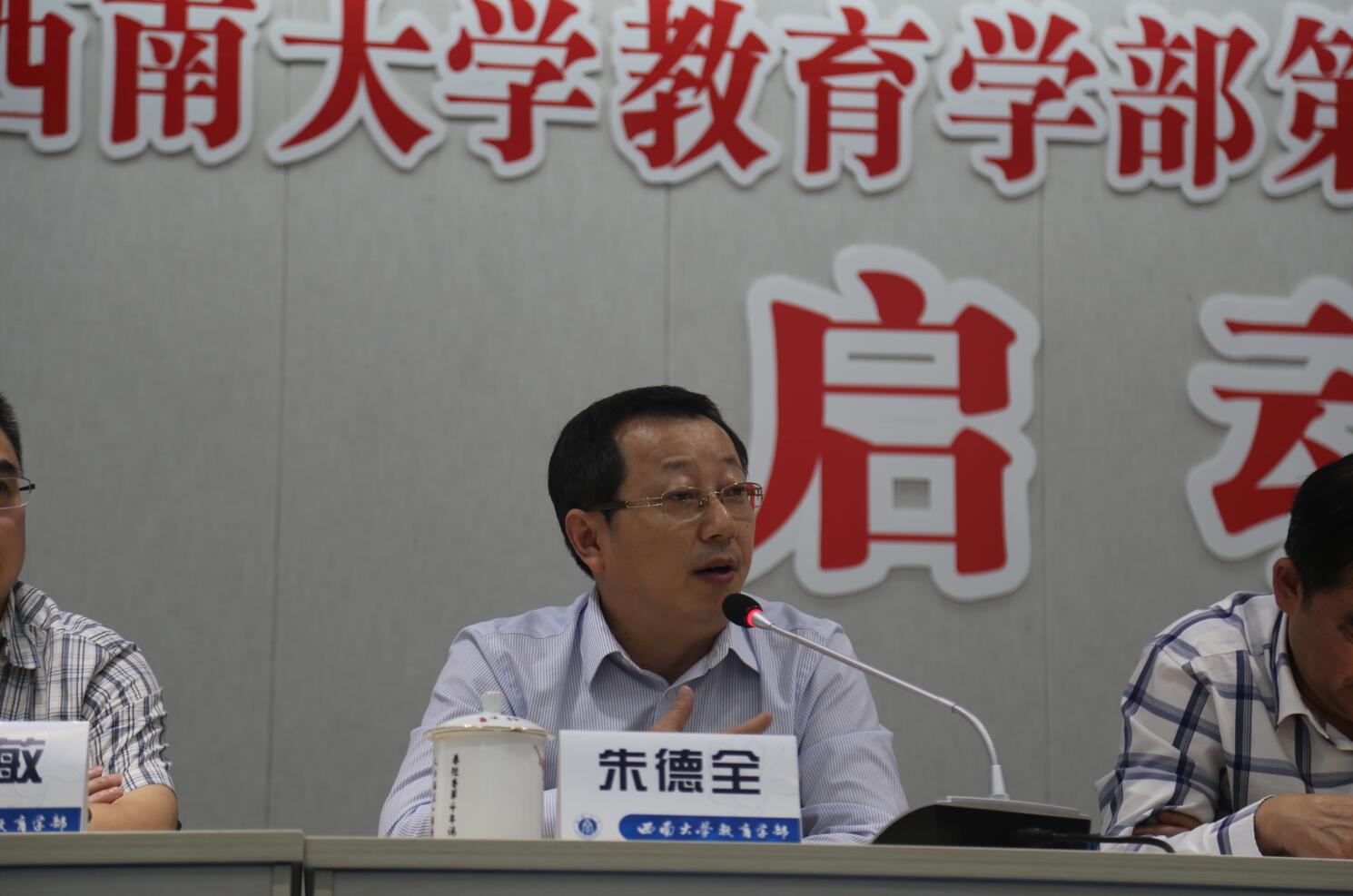接着,导师代表王正青教授做了发言。王教授提醒大家作为学者要警惕“四失”,带好“五顶帽子”,向大家分享了自己体悟的学术原则和学术方法,并以习近平总书记对青年提出的“不负青春、不负光阴”的诫勉大家,希望大家在学术研究的道路上越走越宽广。随后,2019届博士毕业研究生课程与教学论专业的廖婧茜同学发言,她表达了对学部的领导、老师和同学们的感谢,并向大家倡议抓住新时代的机遇,踊跃应对新时代的提问,做好教育现代化的研究和反思,以人为本,以国家民族的教育理想为指引,以教育的长远发展和现实需要为目标,以各自学科的特点、热点、重点、难点为重心,以规范的研究方法和稳固的研究意识为支撑,在学部为大家搭建的平台上,讲所学、质所疑、问所难、辨所思,在学业上居敬持志,精益求精。