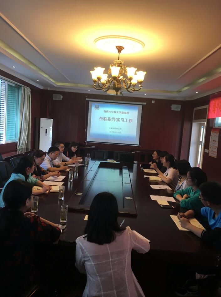 为加强对学部本科生实习工作的管理,深入指导本科生实习实践。2019年4月22、23日,西南大学必赢3003no1线路检测中心副部长彭泽平教授、学前教育学院副院长胥兴春副教授在北碚片区学前教育专业实习指导教师王丹副教授的陪同下,先后前往北碚实验幼儿园、西南大学实验幼儿园、北碚缙云幼儿园和北碚朝阳幼儿园视察学生实习工作,并亲切慰问全体实习学生。
