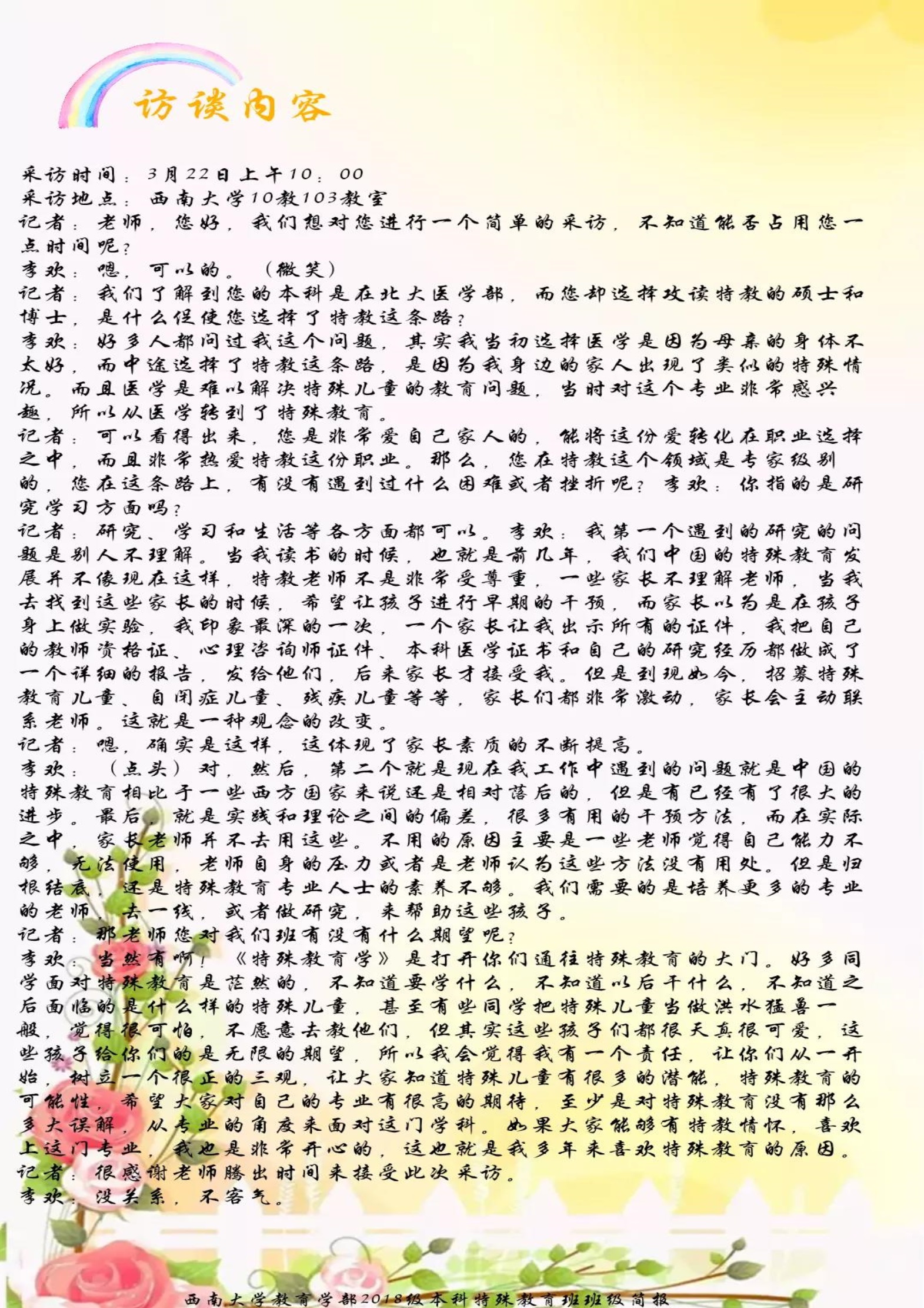 2018级本科特殊教育班班级简报——《三月采春归,正是芳华时》