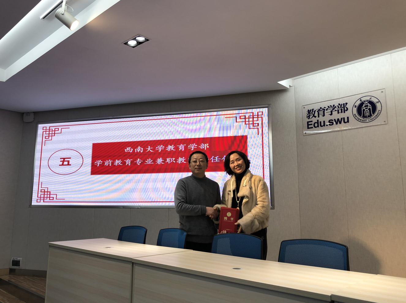 最后,朱德全部长向全体兼职教师颁发了聘书,向参会人员提出了深化学前教育专业建设的新年期望。一是学前人要“跳出来”,跳出学前教育来看待学前教育,打开教育学、社会学、心理学、教育神经科学等跨学科视野;二是“走出去”,走出自己的舒适区,加强国际化,加强国内交流,持续提升教学水平和科研境界;三是“跑下去”,培养顶天立地的学前教育专业师范生,亦要建设顶天立地的学前教育专业教师队伍,进了幼儿园能带班,进了大学能做研究;四是“钻进去”,以学术引领教研,以教研引领教学,长期钻研某个领域,稳固专业实力。