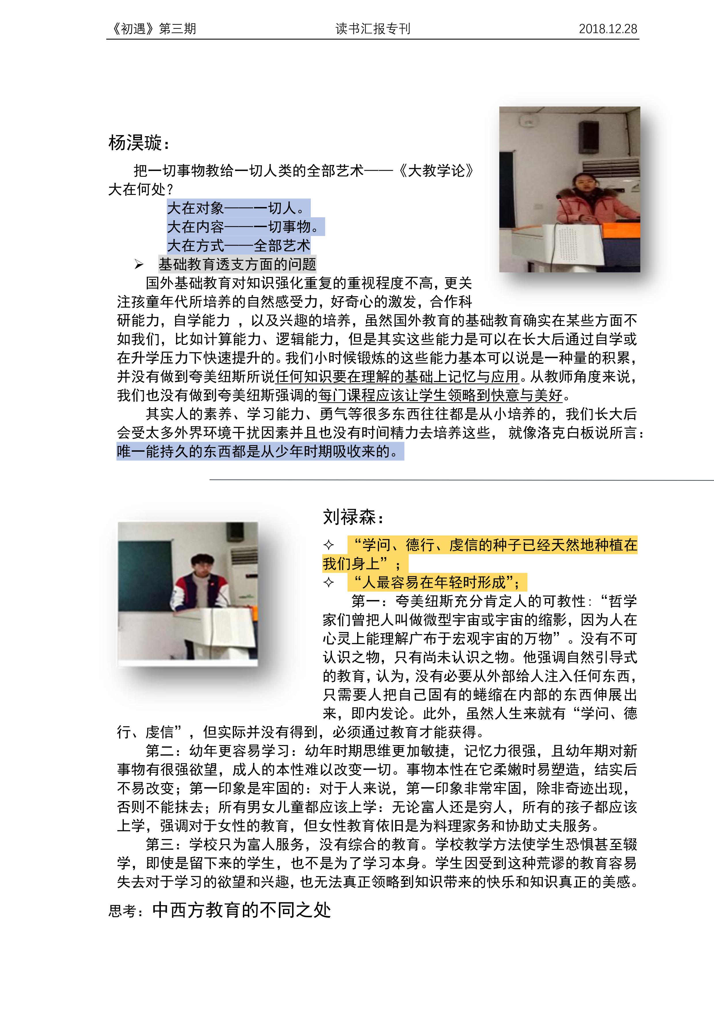 本科2018级晏阳初创新实验班班刊《初遇》第三期