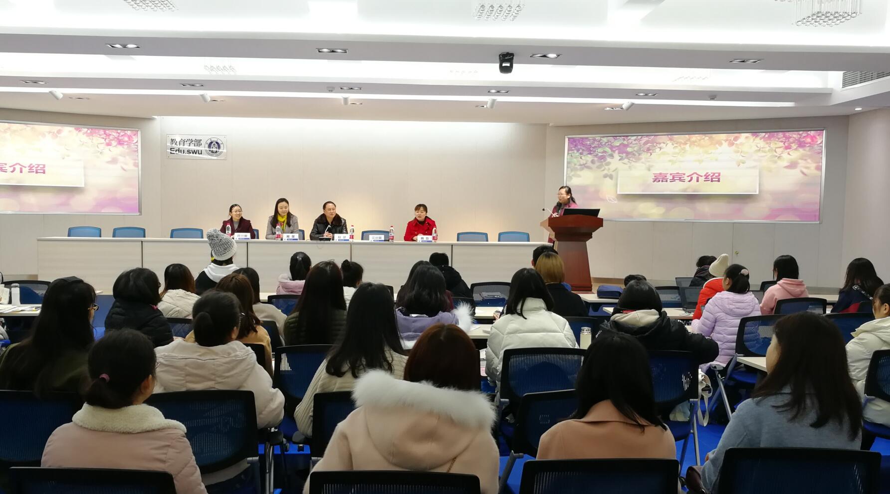2018年11月22日晚七点,特殊教育专业优秀毕业生回母校交流会“特殊教育教师职业发展之路”主题讲座在田家炳教育书院811卓越讲坛报告厅举行。本次讲座由西南大学必赢3003no1线路检测中心特殊教育学院副教授江小英老师主持,特殊教育学院院长赵斌老师、贾添天老师和特教专业优秀毕业生熊瑶、曾欢和姜小梅作为嘉宾出席,必赢3003no1线路检测中心特殊教育本科生及研究生参加讲座。
