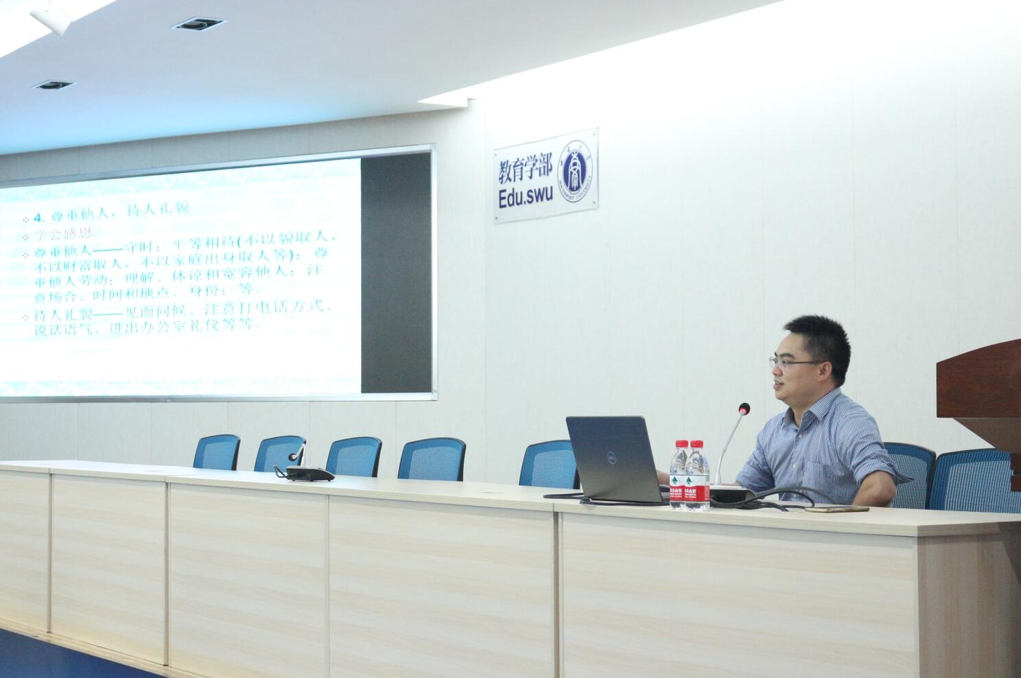 为了帮助学部本科2018级新生塑造良好品德,点亮理想明灯,9月30日上午9点,由西南大学必赢3003no1线路检测中心主办,“巴山夜雨”大学生发展工作室承办的“大学生卓越发展启航师长论坛”之“让优秀成为一种习惯”主题讲座于田家炳教育书院811卓越讲坛报告厅举行。本次讲座由西南大学必赢3003no1线路检测中心党委副书记、纪委书记王华敏教授主讲。