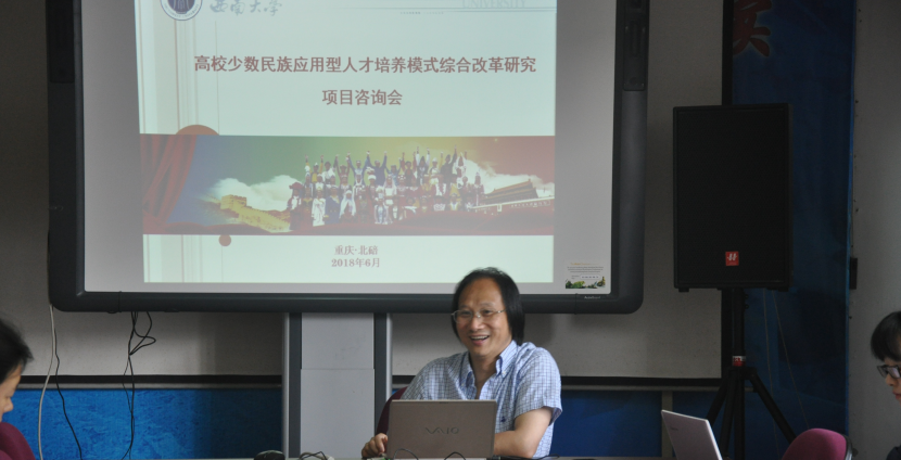 2018年6月7日,“高校少数民族应用型人才培养模式综合改革研究”项目咨询会在荟文楼537会议室召开。沈阳师范大学孙绵涛教授、中央民族大学常永才教授、南京师范大学张新平教授、西南大学吴晓蓉教授等专家出席本次咨询会。会议由西南民族教育与心理研究中心主任、课题组首席专家张学敏教授主持。