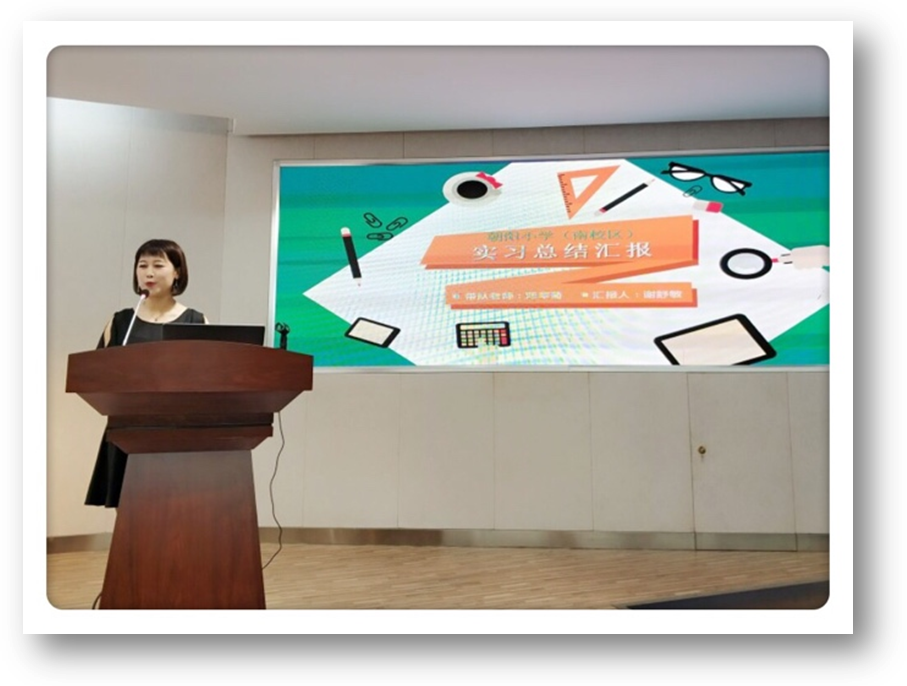 接下来,五支实习小组代表分别对各队实习工作进行了汇报:从教学常规工作、班主任管理和教学科研方面汇报了实习工作情况;从教学管理技能、科研和情感收获总结了实习所获;同时也从组织教学、课堂管理、教师基本功等方面反思不足,并提出了今后的改进方向。此外,各汇报人代表实习小组提出关于实习工作的建议,并表达对实习学校和学部领导、老师的由衷感谢。