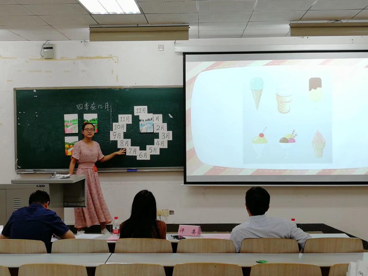 比赛过程中,安宁同学充满想象力与活力地讲授了如何学写儿童诗;马倩同学生动形象地给大家带来“四季在几月”的精彩课堂;彭振飞同学幽默风趣地教会大家画情绪,掌控全场气氛;罗莹同学极具启发性与人文情怀地为大家讲述了古诗《小池》……每位选手都有自己独特而精妙的讲课风格,尽显师者礼仪风范,给我们带来了十二节生动有趣的课堂。