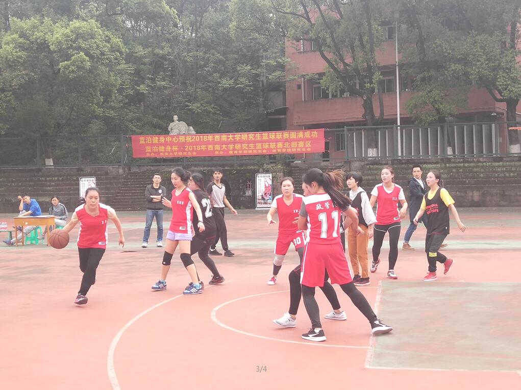 2018西南大学研究生篮球联赛正持续火热进行,一连几日欢呼声、呐喊声不绝于耳。3月30日中午,一运篮球场迎来了三支队伍的对决,它们分别是:药学院男队VS外国语学院男队、新闻传媒学院男队VS政管院男队、政管院女队VS材料与能源学部女队。