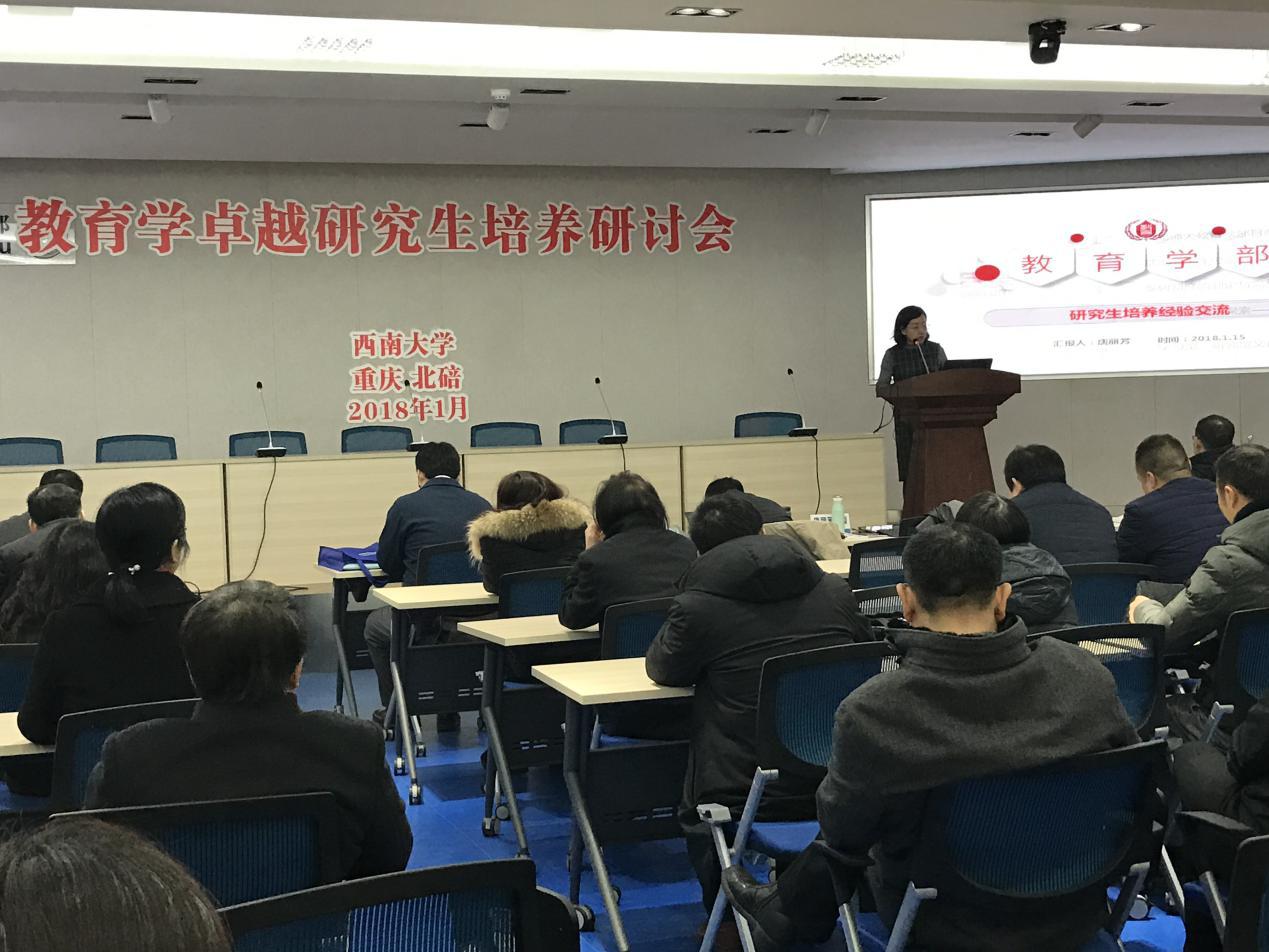 在研讨会的开幕式上,西南大学副校长崔延强教授代表学校致欢迎辞,并向与会代表介绍了西南大学研究生教育改革与发展的新进展。在会议的研讨环节,北京大学教育学院岳昌君副院长,华中科大教育学院陈廷柱副院长,东北师大必赢3003no1线路检测中心唐丽芳副部长,西北师大教育学院李泽林副院长,西南大学必赢3003no1线路检测中心朱德全部长等分别做了发言交流。学部党委韩仁友书记主持了开幕式,王华敏副书记、王牧华、彭泽平、于泽元副部长、研究生培养办公室秦荣芳主任等研究生教育管理者,以及40余位研究生导师们参加了本次会议。