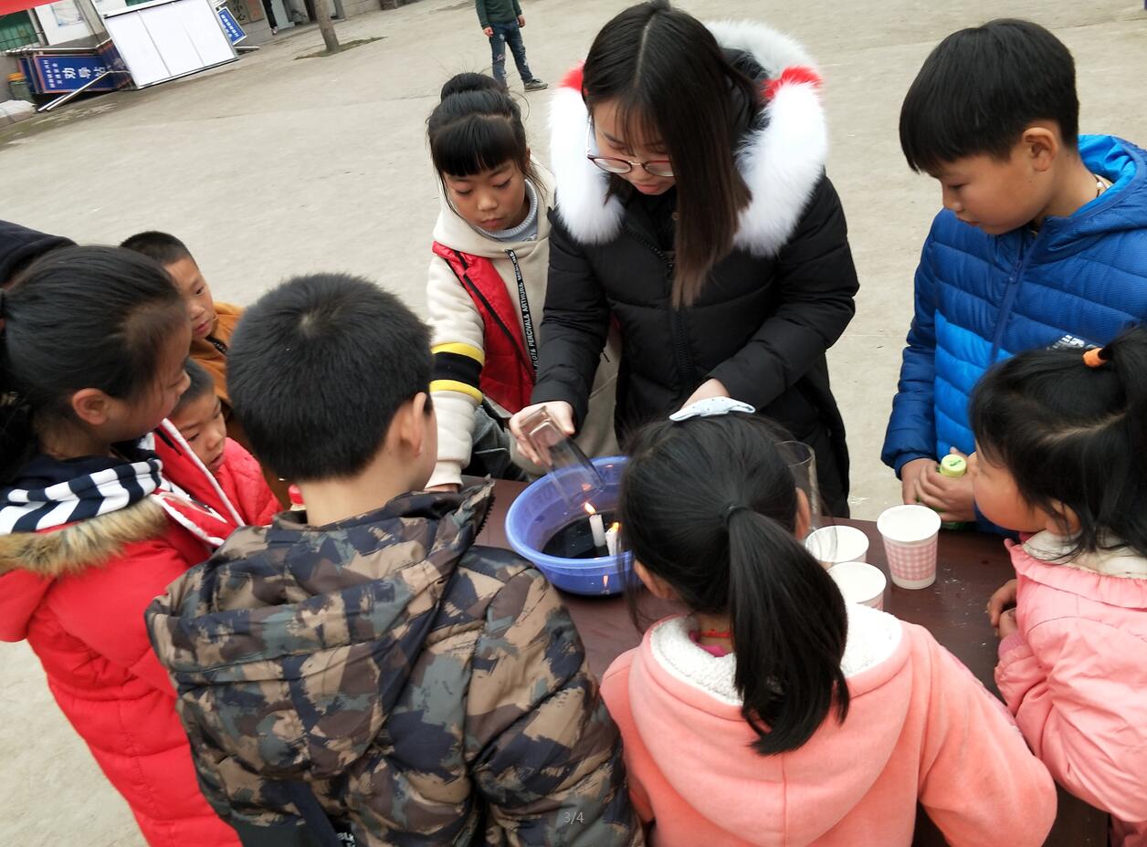 为了增强小朋友们关于水的认识,志愿者们用四个科学小实验:“会动的鸡蛋”、“可爱的画”、“吸水的蜡烛”、“疯狂汽水”,让孩子们体验水的神奇之处。他们首先在柳荫镇便民服务中心的空地上摆设了四个桌子作为小小实验室,然后带领每一组的小朋友们进行“游园活动”,轮流参观和动手体验每一个实验。