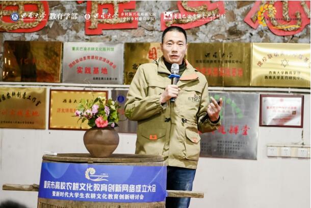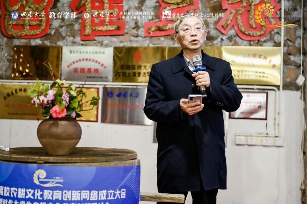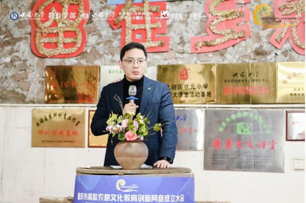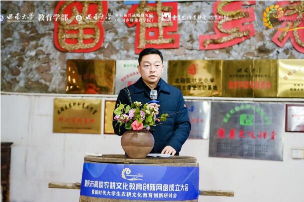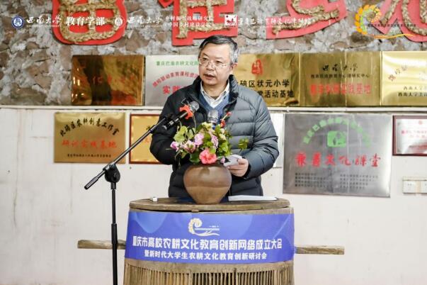 西南大学乡村振兴战略研究执行院长肖亚成教授致辞,强调了重庆市高校农耕文化教育创新网络作为重庆农耕文化重要研究基地和高校教育资源联络平台的重大历史责任。
