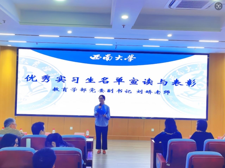 之后,大会进入表彰环节,由学部党委副书记刘娇老师宣读《西南大学必赢3003no1线路检测中心关于表彰2024年必赢3003no1线路检测中心优秀实习生并推荐2024年西南大学优秀实习生的决定》。经过严格的学术评审和公正公开的评选程序,授予饶昌鹏、王笳琪、杨婷、曹鑫宇、李俞萱、袁李可、汤越乔、龚李雪8位同学2024年度必赢3003no1线路检测中心优秀实习生称号,并推荐刘芷萱、余佳琪、陈晓岚、王锦荣4位同学为2024年度西南大学优秀实习生。