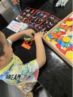 712儿童剧场和711教室分别安排了童年故事会和积木搭建活动。0岁到14岁的孩子在爸爸、妈妈、姥姥和奶奶的陪伴下,沉浸在精彩有趣的故事中,安安静静地享受阅读的乐趣,度过温馨美好的亲子时光。有的孩子全程专注地聆听,一连听了七八个故事都舍不得离开。有的孩子积极举手互动,大胆分享和表达自己的观点。积木搭建活动为孩子们准备了不同难度的闯关游戏,孩子们玩得乐此不彼。值得一提的是,这两项活动还吸引了北碚区特殊教育学校的七个学生和他们家长的积极参与。参与活动组织的学前和特殊教育专业的同学增进了对普通儿童和特殊儿童的了解,丰富了讲读故事的实践经验。