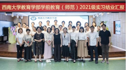 在实习督导和小组汇报中,各个实习小分队通过公开课展示、情景剧、文艺展演等丰富多样的形式,充分展示了四个月实习期间的收获与成长。在渝中区实验幼儿园、江津区几江幼儿园、江津区鼎山幼儿园的联合汇报中,学部领导、老师考察了实习方案的组织和实施情况,听取了三所基地实习生的汇报。在渝北幼儿园、西南大学实验幼儿园、北碚实验幼儿园三所基地中,学部领导、老师同基地负责人、指导教师及实习生进行深入座谈,对实习组织工作予以肯定,也对实习总结提炼、材料归档等方面提出指导性意见。园长与园方实习指导老师们,对实习生师德情怀、保教能力及管理育人上的变化和成长给予高度评价,并以“成长”“希望”“祝福”三个关键词,表达了对实习生未来从教的美好期许。