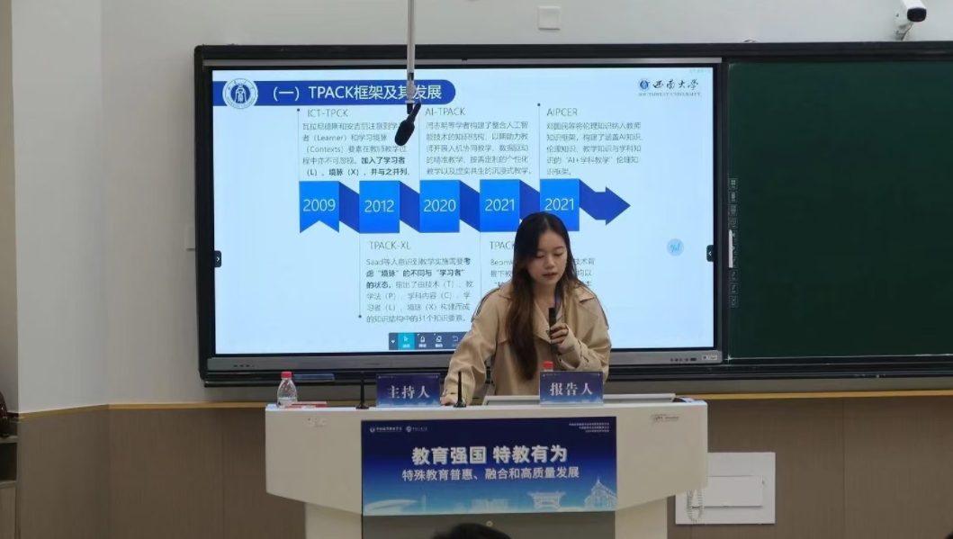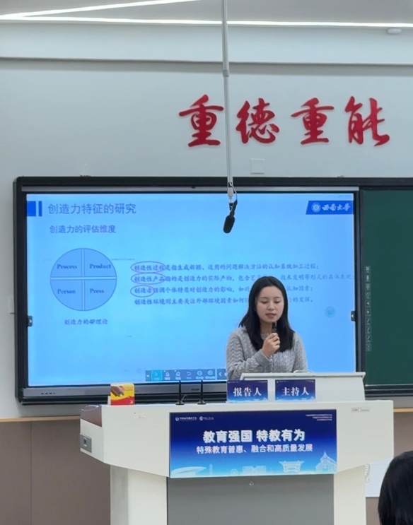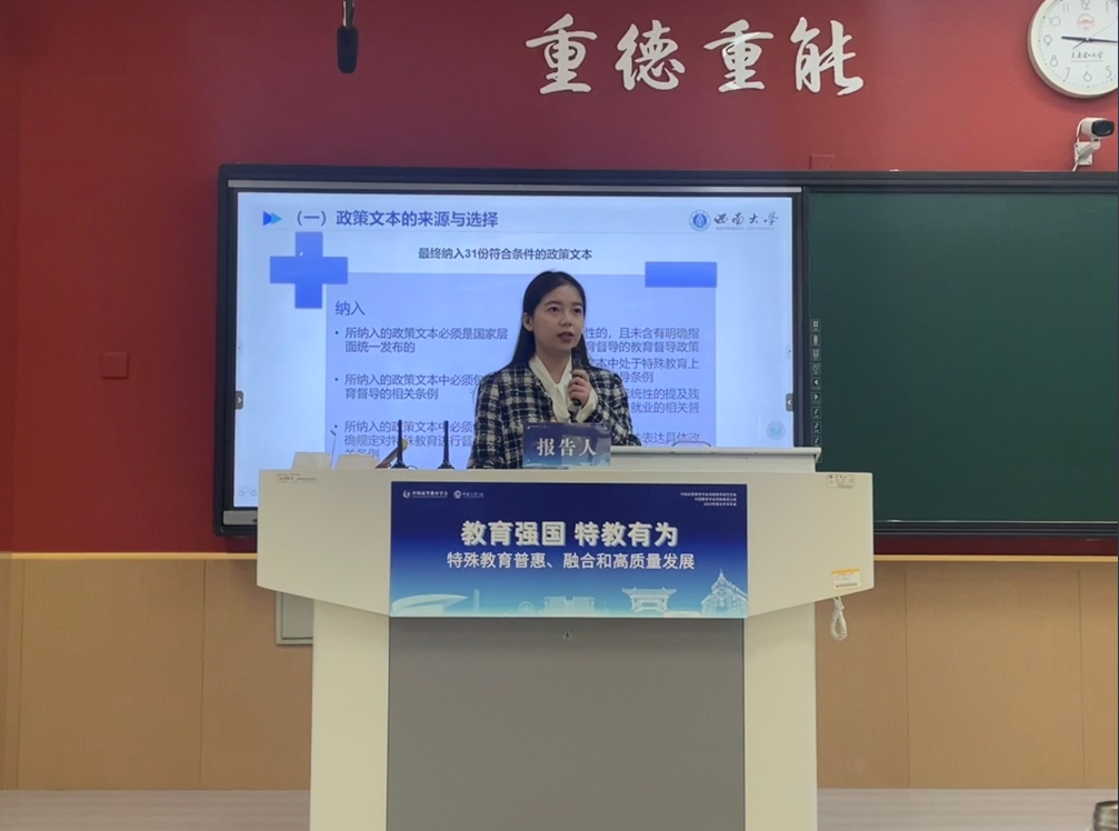 中国高等教育学会特殊教育研究分会副秘书长、学部赵斌教授作为主持人主持年会“残疾人教育研究”分论坛,并对各学者发言进行总结。2022级硕士研究生陈鸿宇于分论坛作了题为《人工智能赋能融合教育教师高质量发展:知识框架与实现路径》的汇报;2022级硕士研究生罗月伶于分论坛作了题为《阅读障碍学生创造力研究进展》的汇报;2023级硕士研究生卞慧敏于分论坛作了题为《教育家精神赋能高质量特教师资队伍建设的时代价值、内在机制与实现路径》、《高质量发展视域下特殊教育督导政策的历史沿革、现实困顿与未来走向》的汇报,其余同学则以提问、交流等形式参与了年会学术研讨。