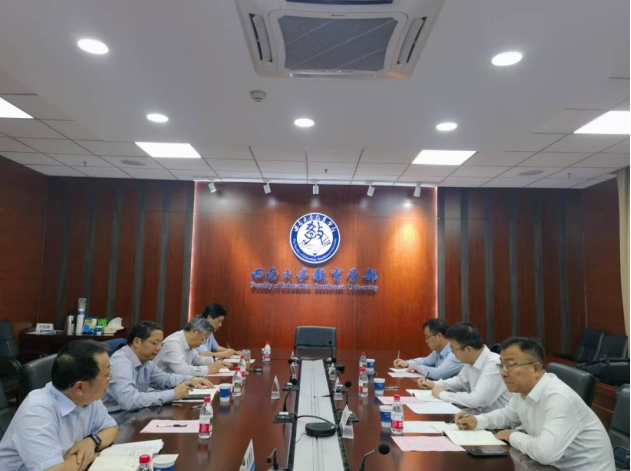 周书记首先代表学部对阎校长一行莅临学部调研表示了热烈欢迎。朱部长介绍了西南大学教育学一流学科的建设情况,用历史悠久、规模适度、职能完善、优势明显、特色鲜明、人际和谐六句话对学科建设情况进行了归纳概括,并表示双方同处西部,交往密切,关系良好,希望双方加强“西西合作”。