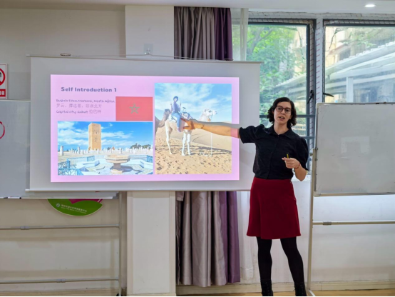 国际之窗拓视野,艺体时光扬活力。实践团中的留学生成员化身“文化向导”,通过生动的图片和故事,带孩子们领略了摩洛哥和贝宁的异域风光与独特习俗;在“走进非洲草原”的绘画课上,孩子们用画笔记录下心中的动物世界;蔬菜与运动主题课则将颜色认知、健康知识及外语学习融为一体。既拓宽了孩子们的跨文化视野、提升了多元知识运用与交流能力,也在融合全球视野与本土实践中实现了综合素质的全面发展。文体活动穿插在每日课程间隙,以孩子们喜闻乐见的体育舞蹈和趣味游戏为载体,让教室成为欢乐的海洋,孩子们在奔跑跳跃中强健体魄,在团队协作中收获友谊。