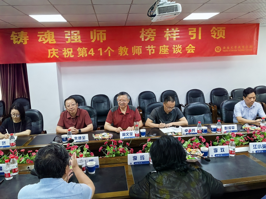 在座谈会的最后,学部部长朱德全教授作了总结发言。他指出,在教师节这个特殊的日子里,召开高层次人才座谈会,旨在充分肯定各位教职员工,特别是高层次人才在学科建设中的重要作用。高层次人才是学科建设人才力量中的“关键少数”,意义重大,影响深远。目前,教育学学科建设已经进入关键时期,希望大家能够进一步发挥榜样示范作用,团结和带领更多教师,聚焦国家教育发展的重要战略性课题,开展有组织的教学和科研工作,产出更多有影响力的标志性成果。朱部长还表示,学部将进一步支持和鼓励各类人才竞相成长,为人才成长提供更好的发展平台和机会。