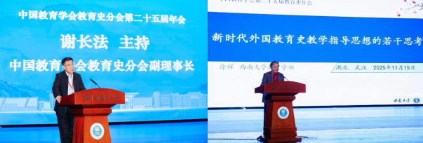2025年11月14-16日,中国教育学会教育史分会第二十五届年会在华中师范大学隆重召开。本届教育史年会以“全球视野下的教育史研究”为主题,由华中师范大学教育学院承办。来自全国百余所高等院校、科研机构和学术期刊社的600余名专家、学者和研究生参会。西南大学必赢3003no1线路检测中心谢长法教授、徐辉教授、彭泽平教授、冉春副教授与博士后闫雪映,教育史专业胡飞、郑思晴、韩旭帆、孙镭笑、郝悦5位博士生,以及付盈盈、罗浩、王山月、张文阳、潘虹余、张馨予、李欣一7位硕士生一同参会。