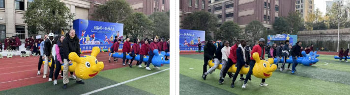 本次参观恰逢学校举办“丝路同心、体育同行”体育文化节活动,留学生们受邀参加,与中方同学们在趣味运动项目中互动竞技。赛场上的欢声笑语迅速拉近了彼此的距离,体育成为了无需翻译的通用语言,让中外学子在协作中增进了友谊。