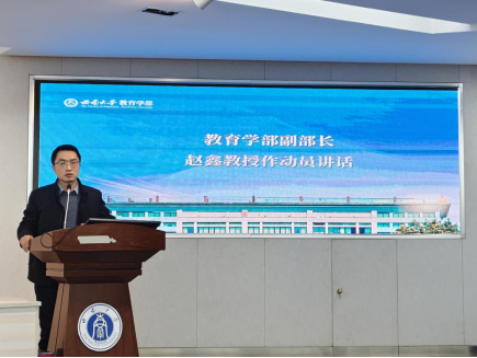 赵鑫教授在大会上作实习动员讲话,他从“一次扎根”“一场对话”和“一段路程”来阐释教育实习,寄语同学们要关注教育的真问题,生成对教育和未来的思考,要谦逊、主动,把握好学生和实习教师的双重角色。他表示,希望同学们脚步稳、心里亮,主动融入学校环境并积极参与教育实践。
