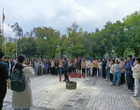 培训首先是理论讲解,保卫处老师结合校园火灾典型案例,细致讲解火灾预防、报警流程、火场逃生等安全常识,重点拆解干粉灭火器“提、拔、握、压” 操作口诀,强调上风站位、对准火焰根部喷射、保持安全距离等关键要点,并进行标准化示范。