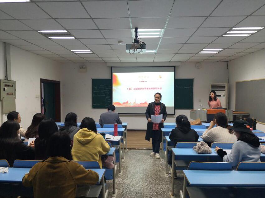 2019年11月15日19:00,研究生2018级第一党支部全体党员在田家炳511教室开展以“对照党章党规找差距,做中共合格党员”为主题的专题组织生活和党员民主评议会,纪委委员邓翠菊老师列席指导本次会议。